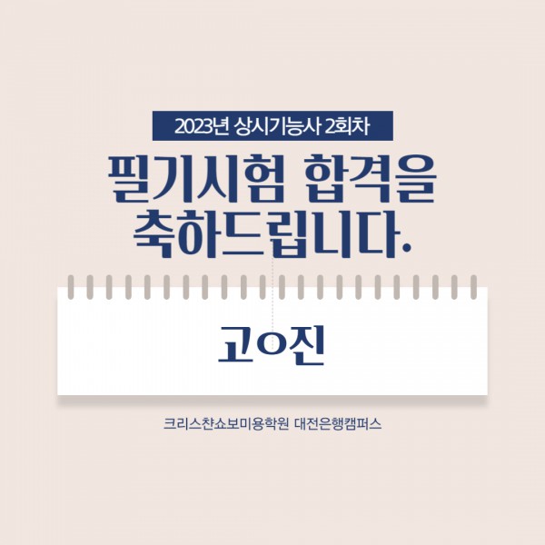 미용사(피부) 필기시험 합격을 축하드립니다.