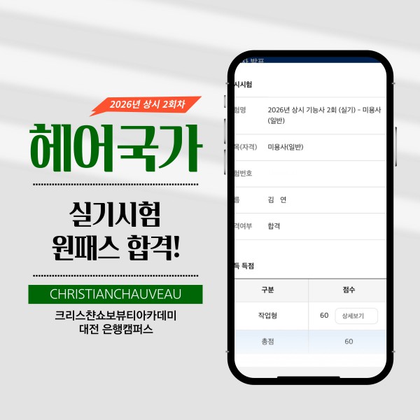 미용사(일반) 실기시험 합격을 축하드립니다.