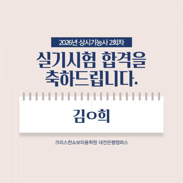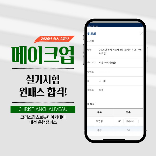미용사(메이크업) 실기시험 합격을 축하드립니다.