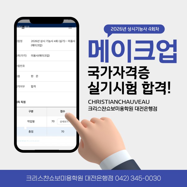 미용사(메이크업) 실기시험 합격을 축하드립니다.
