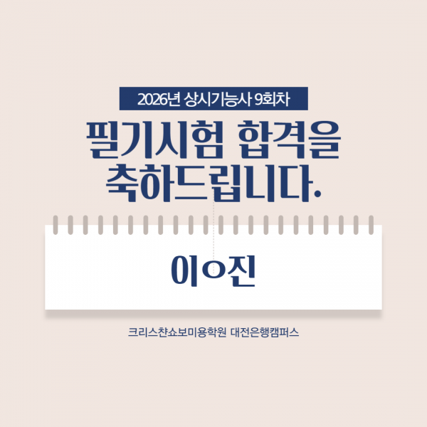 미용사(피부) 필기시험 합격을 축하드립니다.