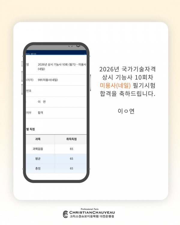 미용사(네일) 필기시험 합격울 축하드립니다.